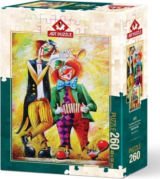 Uživajte u zabavnim trenucima slažući motiv klaunova koji će razveseliti i djecu i odrasle. Zahvaljujući 260 dijelova riječ je o ugodno savladivom izazovu za slobodno vrijeme te odličnom prijedlogu za poklon ljubiteljima puzzli.