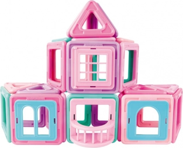 Magformers Mini House je lijepo diziran i fantastično sastavljen set koji sadrži 42 dijela. Odlična je građevna igra za svaku malu arhitekticu i opremljena je posebnim clip-in dodacima namijenjenima za gradnju zgrada – poput balkona, prozora i svega potrebnog za izgradnju kuće iz snova u pastelnim ružičastim i tirkiznim bojama. Možete sagraditi bilo što, od kućica i vikendica do rekreacijskih kuća, kompletno i sa stablima. Set sadrži 18 kvadrata, 12 trokuta, 1 jednokrilni prozor, 1 dvokrilni prozor, 1 podijeljeni prozor, 1 balkon, 6 ciglastih umetaka i 2 stabla. Primjereno za djecu od 3 godine. Broj dijelova: 42. Kreativna magnetska građevna igra Magformers omogućuje sastavljanje velikog broja trodimenzionalnih objekata pomoću dvodimenzionalnih plastičnih poligona. Magformers vježba finu motoriku, potiče kreativnost, uči djecu bojama i osnovnim geometrijskim oblicima. Dimenzije dijelova i pažljivo odabrani oblici osiguravaju maksimalnu moguću sigurnost igračke. Materijal od kojeg je izrađena građevna igra ispunjava najstrože higijenske i zdravstvene kriterije. Dijelovi su dovoljno veliki, ne mogu se progutati i praktički su nelomljivi. MAGFORMERS se vrlo dobro može kombinirati i s poznatom magnetskom građevnom igrom Geomag.