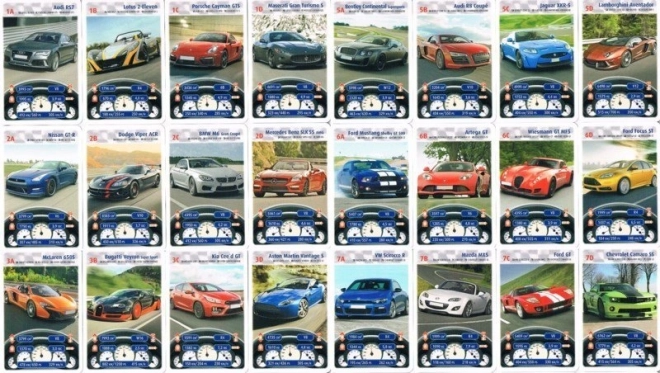 Zabavna kartaška igra za djecu i odrasle s temom sportskih vozila. Svaka karta sadrži stvarne tehničke podatke (obujam motora, broj cilindara, masa, ubrzanje 0–100 km/h, snaga i najveća brzina). Špil nudi 32 karte podijeljene u 8 kvarteta – idealno za najmanje 3 igrača i napeto obiteljsko igranje.