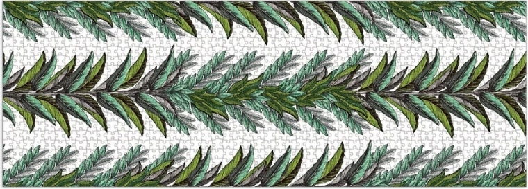 Slagalica sadrži prizor s bijelim svodovitim strukturama, zelenilom, cvijećem i fantastičnim životinjama, što nudi jedinstveno vizualno iskustvo.