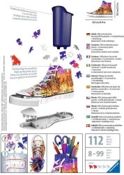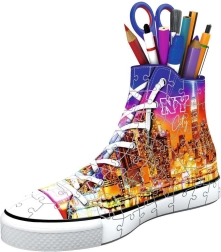 Ova 3D slagalica donosi inovativan i nekonvencionalan oblik za svakoga tko voli spajanje dijelova i modne dodatke. Zahvaljujući posebnim zakrivljenim i savitljivim dijelovima koji precizno pristaju na svoje mjesto, možete izgraditi realistično izgledajuću tenisicu s motivom New York Cityja – grada koji nikad ne spava.
