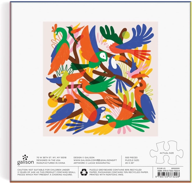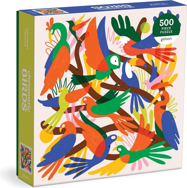 Otkrijte radost slaganja sa stilskim kvadratnim puzzlama s motivom kromatičnih ptica. Pakiranje sadrži 500 dijelova i praktičnu predlošku motiva za lakše slaganje. Nakon slaganja nastaje dekorativna slika dimenzija približno 50,8 × 50,8 cm.