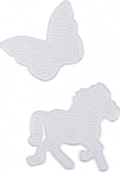 Stvarajte šarene slike od pegla-perli uz praktične podloge PLAYBOX. Prozirni materijal omogućuje postavljanje predloška (nije uključen u pakiranje) ispod podloge i praktično slaganje prema njemu. Set sadrži dva omiljena oblika – leptira i konja – koji će razveseliti male i velike kreativce.