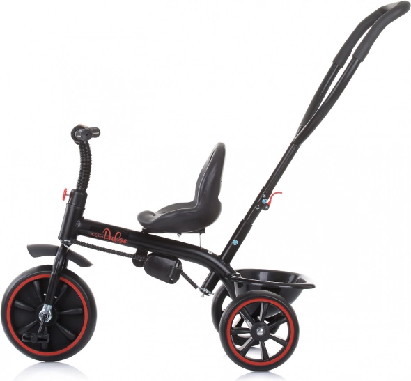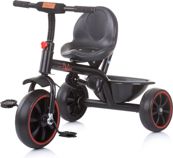 Promišljeni detalji poput sklopivog oslonca za noge za manju djecu, prednjeg kotača s blatobranom i zaštitnim pokrovom protiv zapinjanja nožica te stražnje odlagalne košare čine ovu trokolicu praktičnim pomagačem za svaki dan.