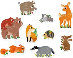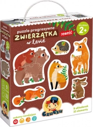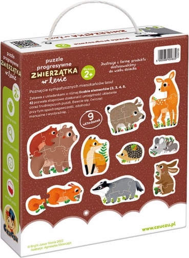 Ovaj set progresivnih puzzli CzuCzu idealan je kao prve višedijelne puzzle za djecu od 2 godine. Postupna težina (2, 3, 4, 5 i 6 dijelova) podržava prirodan razvoj vještina i samopouzdanja pri slaganju. Prekrasne ilustracije prikazuju omiljene šumske životinjice – od malih miševa do medvjedića.