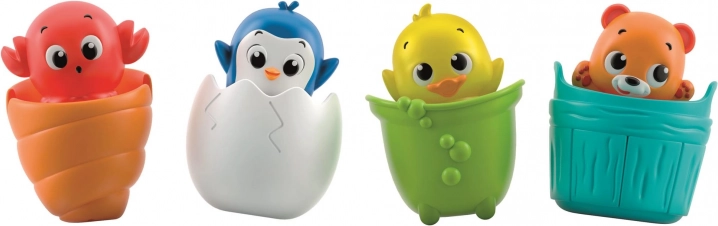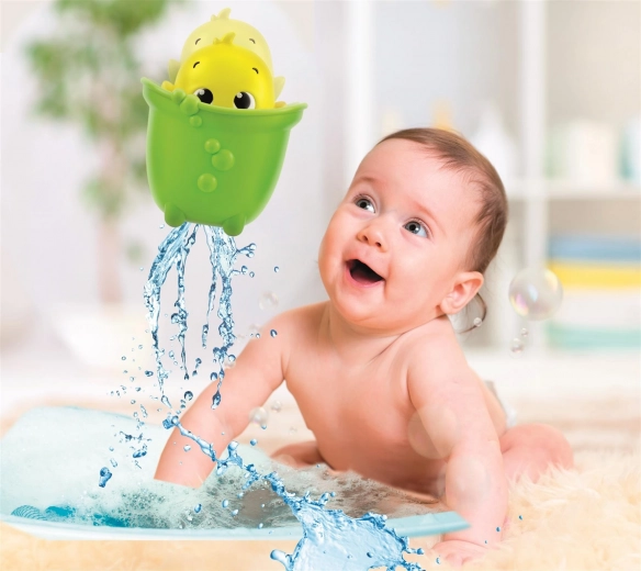 Uronite igračku i promatrajte kako životinjica proviruje. Nakon vađenja, voda otječe kroz otvore, a pačića se ponovno skriva – beskrajna zabava pri svakom kupanju.