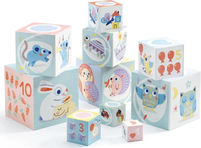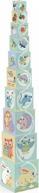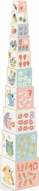 Ovaj set sadrži 10 kocki koje se mogu slagati jedna na drugu do visine od 89 cm. Najveća kocka ima dimenzije 15 x 15 x 15 cm.
