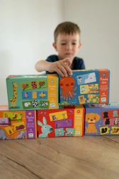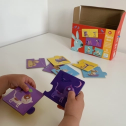 Puzzle uključuju razne interaktivne i obrazovne aktivnosti, kao što je imenovanje životinja, oponašanje njihovih pokreta i zvukova, koje vode ka razvoju grube motorike. Djeca također uče uspoređivati slike i tražiti odgovarajuće pridjeve.