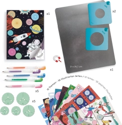 - 1 metalna podloga; 2 magnetna okvira; 5 nazubljenih kotačića različitih veličina s 3 otvora; 5 gel olovaka; 10 tematskih slika za dekoriranje (svaki motiv 3×); detaljne upute korak po korak