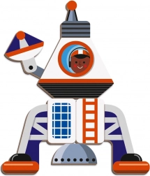 U pakiranju se nalazi 52 magnetska dijela i 18 kartica s predlošcima svemirskih vozila. Djeca mogu slagati prema karticama ili stvarati vlastite kombinacije. Magneti se mogu koristiti i na drugim magnetnim pločama ili površinama.