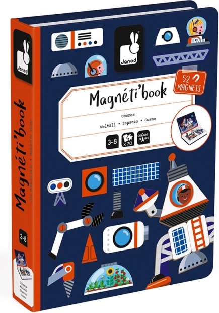 Janod Magnetična knjiga Svemir: 52 magneta i 18 predložaka za kreativno slaganje. Kvalitetna, prijenosna edukativna igračka za djecu 3–8 godina.
