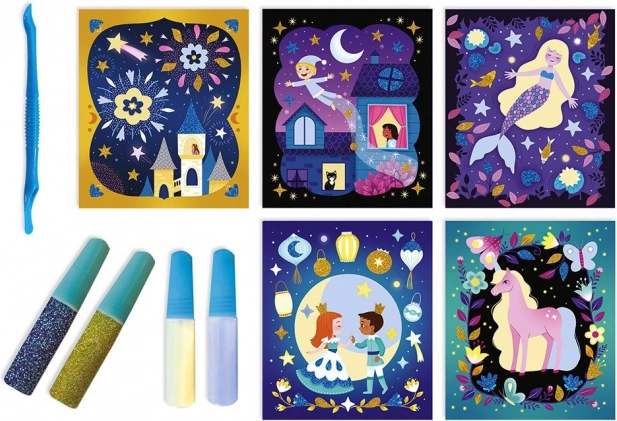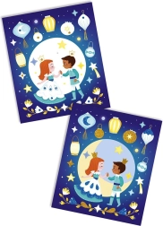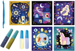 Napravite svjetleće slike od obojenog pijeska sa šljokicama! Djeca pomoću špatule, koja je dio pakiranja, uklanjaju označene samoljepljive površine. Na ta mjesta zatim posipaju sjajni obojeni pijesak koji svijetli u mraku. Višak pijeska može se vratiti natrag u odgovarajuću tubu. Mali savjet za početak – započnite pijeskom na malim površinama i tamnijim bojama. Set sadrži: 5 kartica sa slikama, 1 špatulu, 4 tube sa sjajnim obojenim pijeskom. Pogodno za djecu od 5 godina. Set Janod Atelier za stvaranje i poticanje vještina i mašte kod djece. Kreativne igračke za djecu ne zauzimaju mnogo mjesta, prikladne su za putovanja i za dom, u zdravlju i bolesti, te će zabaviti djecu na duge sate. Stvaranje raznim tehnikama potiče fokus i koncentraciju, prirodno istraživanje i likovne sposobnosti.