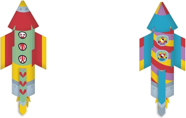 Set sadrži 10 listova za slaganje do 5 originalnih raketa s živopisnim uzorcima koji oduševljavaju na prvi pogled.