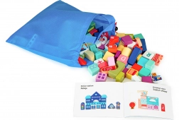 Složite vlastiti grad s hotelom, bolnicom, školom, policijom i vatrogascima te se provozajte ulicama u priloženim autićima. Dijelovi su ugodni na dodir, čvrsti i jasno obojeni kako bi djeca lako prepoznala funkcije pojedinih zgrada. U kompletu je i praktična torba za prenošenje te slikovni priručnik koji sugerira kako graditi.