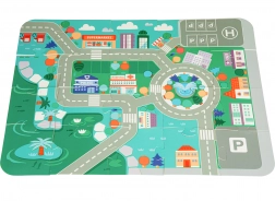Dio seta je pjenasti podlog s ulicama, parkiralištima i zgradama, na kojem djeca lako mogu složiti svoj grad i krenuti u akciju s autićima.
