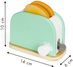 Predstavljamo vam izvrstan drveni toster sa setom za doručak koji će vašoj djeci pružiti sate kreativne zabave. Set je osmišljen za poticanje njihove kreativnosti i omogućuje im oponašanje pripreme pravog doručka.