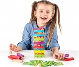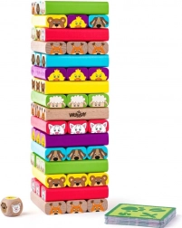 Šarena kula nudi igru na zabavan način uz učenje o životinjama i bojama zahvaljujući priloženim ilustracijama na kockicama.