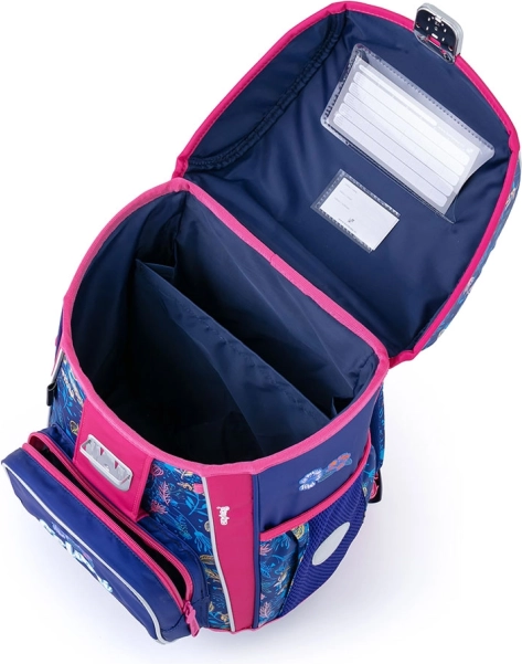 Ruksak je anatomski oblikovan s udobnim podstavljenjem i ojačanim leđima, što osigurava pravilno pristajanje na dječjim leđima.