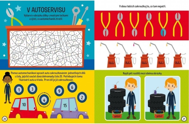 Sjednite za volan snažnog kamiona, plovite svemirom ili sudjelujte u uzbudljivoj automobilskoj utrci s ovom atraktivnom knjigom punom aktivnosti! Radujte se: