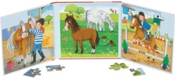 Otkrijte prekrasno ilustriranu magnetičnu knjigu slagalica sa scenama s farme, koja donosi čak 4 slike. Dvije od tih slika su slagalice, svaka s 20 magnetičnih dijelova koji odlično prianjaju. Knjiga je izrađena od čvrstog kartona, što je čini izdržljivom i praktičnom za putovanja. Pomaže razvijati finu motoriku i logičko razmišljanje djece.