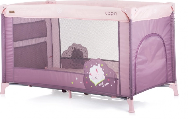 Putni krevetić CHIPOLINO Capri osmišljen je za udobnost djeteta i jednostavno rukovanje roditelja. Zahvaljujući brzom mehanizmu sklapanja, u trenu je spreman za uporabu kod kuće ili na odmoru. Bočni ulaz s patentnim zatvaračem omogućuje starijoj djeci sigurno samostalno ulaziti i izlaziti, a mekana podloga pruža udobnost tijekom odmora.