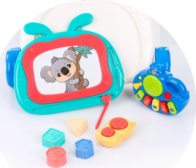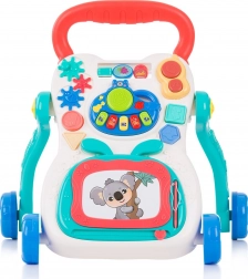 Interaktivno guralo na guranje idealan je suputnik za djecu koja već samostalno hodaju i žele otkrivati nove vještine. Zahvaljujući širokoj ručki i stabilnim kotačićima pomaže u jačanju sigurnosti pri hodu, dok igraći panel s preslatkim motivom koale nudi puno zabave – od melodija i svjetlosnih efekata do crtanja i sviranja na tipkama.