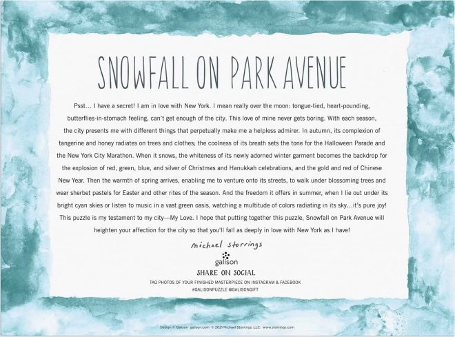 Osjetite posebno čaroliju zasnježene Park Avenue kroz ovu detaljno osmišljenu slagalicu. Uronit ćete u idiličnu scenografiju koja vas vodi ravno u srce zimske romantike kao iz filmova.