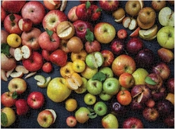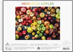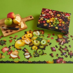 Motiv na puzzlama prikazuje raznoliku paletu sorata jabuka, što pri slaganju pruža estetski doživljaj.