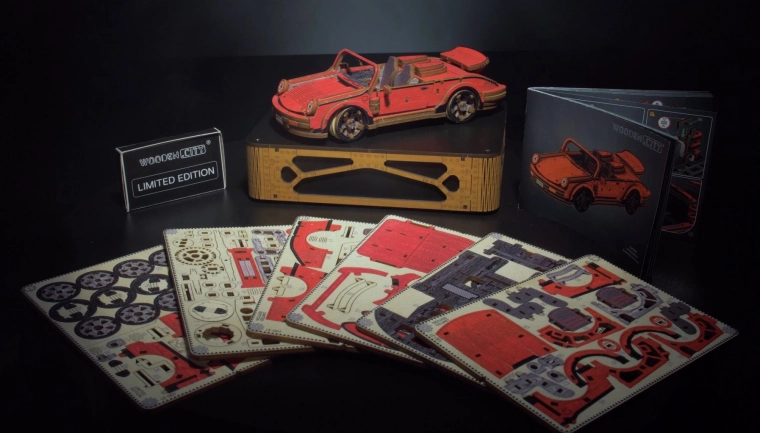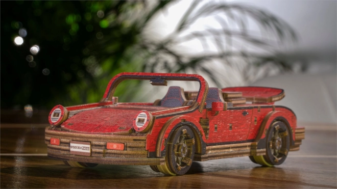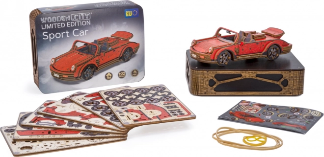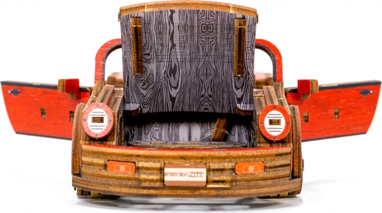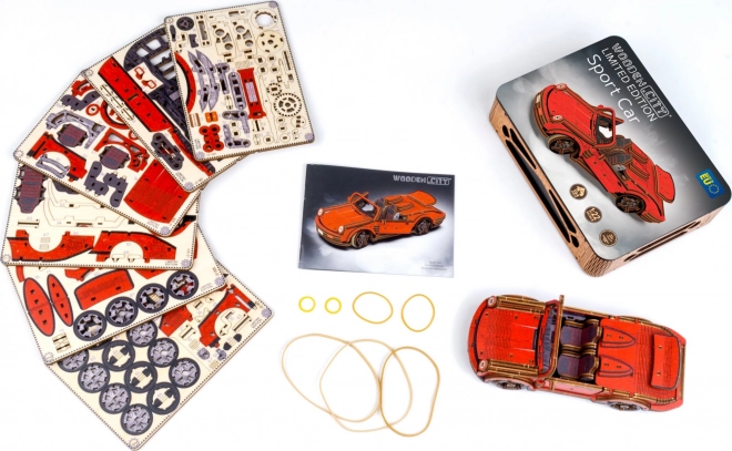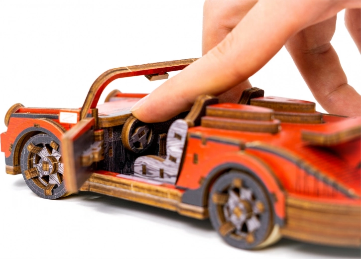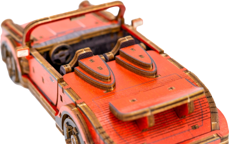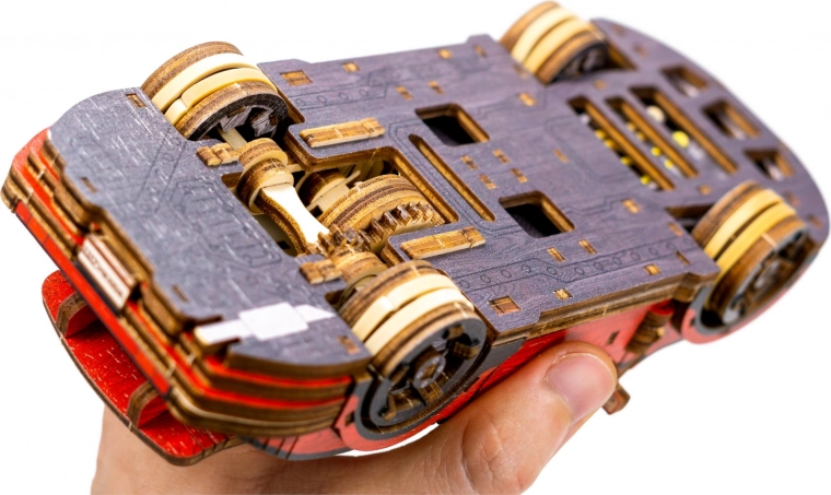 Drvena mehanička slagalica najuzbudljivijeg sportskog automobila čeka na vas! Zahvaljujući jedinstvenom dizajnu i iznenađujućim detaljima ovog modela, vaše će slobodno vrijeme biti puno zabave i sjajnih emocija. Možete koristiti upravljanje prednjim kotačima. Auto s inercijskim mehanizmom može prijeći do 1 metra. Značajke sportskog automobila: - motor pokretan gumenim remenom, - okretni prednji kotači, - izraženi obojeni elementi zahvaljujući vrlo preciznom UV tisku, - drvena kutija služi kao postolje, - kolekcionarsko izdanje. 3D puzzle WOODEN CITY Sport Car bit će najbolji poklon za svakog ljubitelja sportskih vozila. Težina: 3 od 5 (prema podjeli Wooden City) Procijenjeno vrijeme sastavljanja: 3 sata Mjerilo: 1:22 Drvene 3D puzzle WOODEN CITY su detaljno razrađeni funkcionalni mehanički modeli koji se sastavljaju bez ljepila ili alata. Izrađene su od ekoloških drvenih materijala – kvalitetne brestove šperploče. S mehaničkim drvenim puzzlama WOODEN CITY doživjet ćete sate zabave pri sastavljanju i upoznati prijenose, gumene motore, zupčanike i druge dijelove iz neposredne blizine. funkcionalni mehanički model sastavljanje bez upotrebe ljepila ili alata kvalitetna izrada od prirodnog materijala razrađeni detalji UPOZORENJE: Za sastavljanje su potrebni skalpel s lomljivim oštricama, škare, brusni papir i voštana svijeća (nisu dio proizvoda). Za ispravan rad i nesmetan pogon potrebno je osovine i zupčanike navosati. Dimenzije sastavljene slagalice cca 19,7 x 8,9 x 5,8 cm