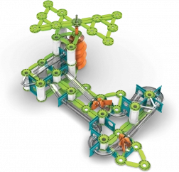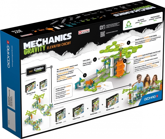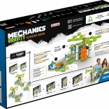 Geomag Mechanics Gravity je set za slaganje koji spaja magnetizam i mehaniku, potičući kreativnost i domišljatost. Sadrži magnetske štapiće, metalne kuglice i mehaničke elemente od recikliranih materijala.