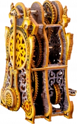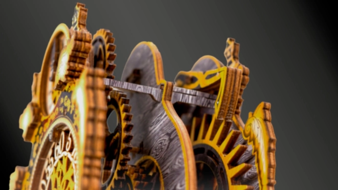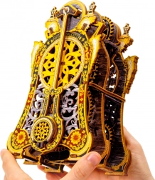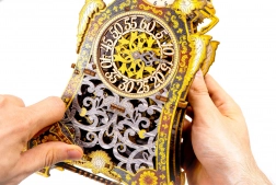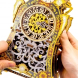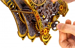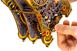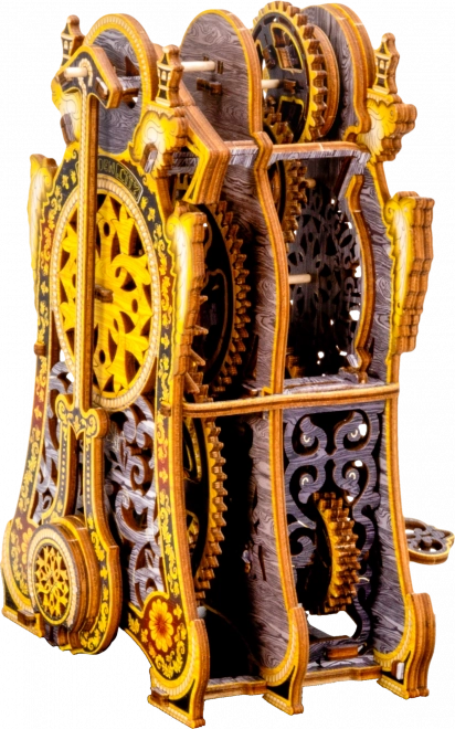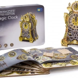 Čarobni sat je priča i znanost u jednom. Nakon sklapanja oživljava pokretom zupčanika i pravilnim radom klatna. Dva brojčanika – za sate i minute – omogućuju praćenje vremena i fascinantne mehanike. Limitirano izdanje s finim gravurama i kolor UV tiskom istaknut će se u interijeru i prizvati atmosferu klasičnih bajki.