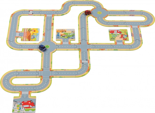 Izgradite vlastiti grad i trkaći krug. Ova podna cestovna staza marke GOKI donosi maksimalnu varijabilnost – djeca mogu stvarati jednostavne rute za mirnu vožnju i složenije trkaće krugove sa zavojima, raskrižjima i parkiranjem. Zahvaljujući robusnim dijelovima i promišljenoj izradi, staza se lako sklapa i rasklapa.
