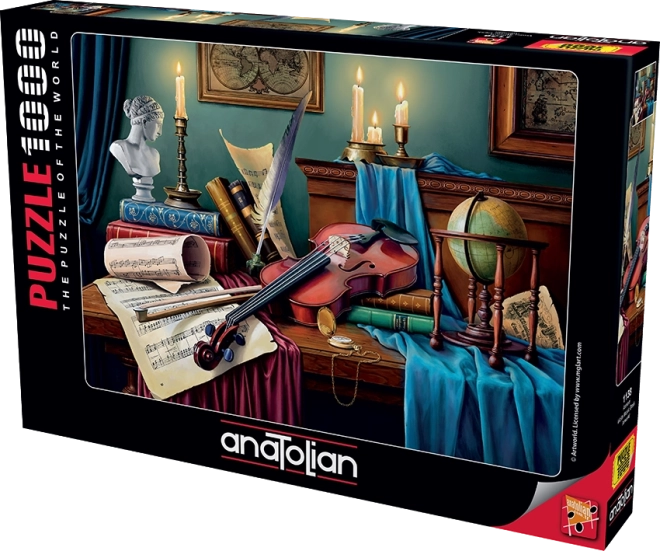 Upustite se u slaganje elegantnog motiva Stol violinista i priuštite si trenutke mira i koncentracije. Puzzle ANATOLIAN odlikuju precizan izrez, kvalitetan tisak i zasićene boje koje motivu daju jedinstvenu atmosferu. Praktičan stalak omogućuje jednostavno postavljanje poklopca kutije kao predloška kako biste sliku imali stalno na oku.