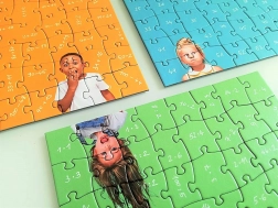 Otkrijte prve matematičke slagalice koje pretvaraju računanje u razigran izazov. Tri zasebne slike vode djecu od prepoznavanja znamenki do jednostavnih računskih operacija. Slagalice se mogu slagati bez predloška za veći izazov ili s predloškom iz kutije za opuštenije iskustvo.