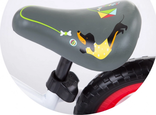 Kotači s punim gumama od EVA pjene ne zahtijevaju održavanje, izvrsno ublažavaju manje neravnine i otporni su na bušenje. Podesivo sjedalo (cca 30–35 cm) i upravljač (cca 57–62 cm) omogućuju prilagodbu rastu djeteta.