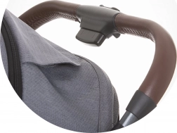 Djetetu visoku udobnost pružaju podesivi naslon za leđa i noge, proširiva nadstrešnica s prozorčićem i sjenilom te odvojiva prednja prečka obložena eko kožom. Sigurnost podupiru 5-točkasti pojasevi s podstavom, stražnja povezna kočnica i sigurnosna traka na ručki. U pakiranju su i navlaka za noge te mrežica protiv komaraca, a praktična košara nudi dovoljno mjesta za sve potrebno.