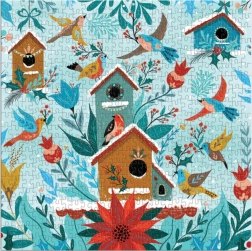 Galison puzzle Zimsko utočište odvodi vas u čaroban zimski svijet pun kućica za ptice, crvenih ptica, imele i božićnih zvijezda. Ova puzzle izrađena je s posebnim naglaskom na kvalitetu i detalje, što osigurava vjerojatno prenošenje boja i detalja kroz mat završnu obradu. Zahvaljujući glatkoj površini stražnje strane, pri skladištenju složene puzzle se ne nakuplja prašina.