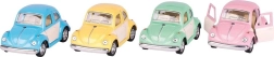 Zahvaljujući kompaktnim dimenzijama 10 × 5,5 × 5,5 cm, autić je idealan partner na putu. Dovoljno ga je nekoliko puta povući unatrag i Buba kreće naprijed – jednostavna i omiljena zabava koja ne dosadi.