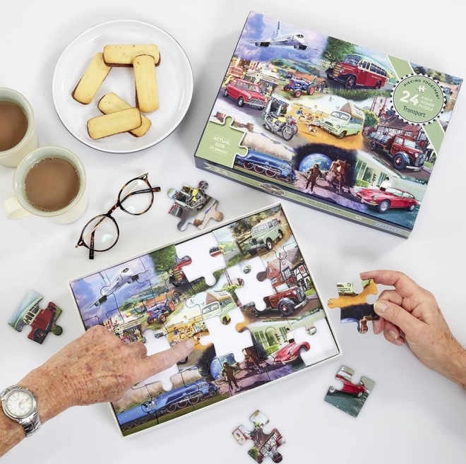 Puzzle GIBSONS iz serije Slažemo zajedno donosi radost slaganja za sve generacije. Zahvaljujući manjem broju dijelova, živim bojama i priloženom predlošku, idealan je za početnike, seniore i za zajedničke trenutke s djecom. Motiv prijevoznih sredstava potiče razvoj percepcije, koncentracije i fine motorike.