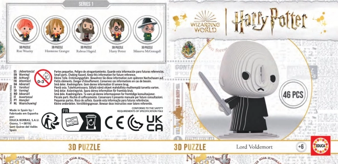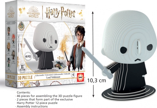 Sastavite ikoničan lik iz čarobnjačkog svijeta – 3D puzzle Harry Potter: Lord Voldemort s 46 dijelova. Model se sastoji od predizrezanih kartonskih slojeva u punoj boji koje lako slažete jedan na drugi bez upotrebe ljepila. Rezultat je otprilike 10 cm visoka figurica iz kolekcionarskog izdanja, uz koju dodatno dobivate 2 ekskluzivna dijela za 12-dijelnu kolekcionarsku slagalicu Harryja Pottera.