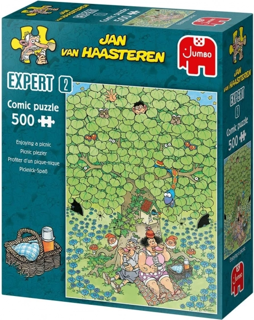 Istražite otkačenu piknik scenu punu iznenađenja i tipičnih elemenata koje obožavatelji JAN VAN HAASTERENA vole – tu je slavna peraja morskog psa, „lutajuće“ ruke, zubna proteza, Sv. Nikola i autorov autoportret. Svako slaganje otkrit će novi sitni geg i garantirati da ćete se zabavljati iznova i iznova.