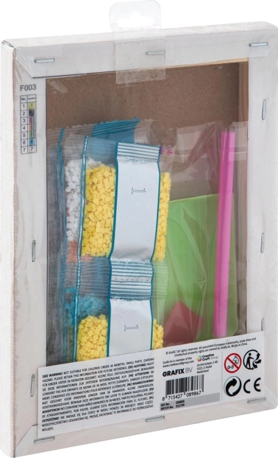 GRAFIX dijamantno slikanje „Pixel kaktus” jednostavna je i umirujuća kreativna aktivnost u kojoj uz pomoć voska i aplikacijskog pera postavljate sitne kamenčiće na unaprijed otisnuto i ljepljivo platno. Svaka vrećica je jasno numerirana, pa se u bojama nećete izgubiti, a rezultat je uvijek precizan i blistav.