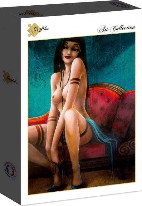 Otkrijte ljepotu i detaljnost umjetničkog djela s puzzlom 'Miss Dragon' marke Grafika. Ova slagalica od 1000 dijelova dio je kolekcije 'Erotika i senzualnost' i namijenjena je odraslim entuzijastima slagalica. S dimenzijama 69 x 47,8 cm, slagalica prikazuje djelo francuske umjetnice Misstigri, koje je precizno zabilježeno na kvalitetnom kartonu.