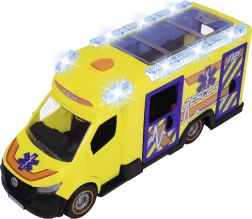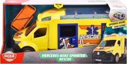 Ovaj Mercedes-Benz Sprinter od Dickie Toys donosi stvarno spasilačko iskustvo s funkcijama svjetala i zvukova. Vozilo ima vrata vozača, suvozača, bočna i stražnja vrata koja se otvaraju te prozirni krov, što omogućuje pristup detaljnoj unutrašnjosti.