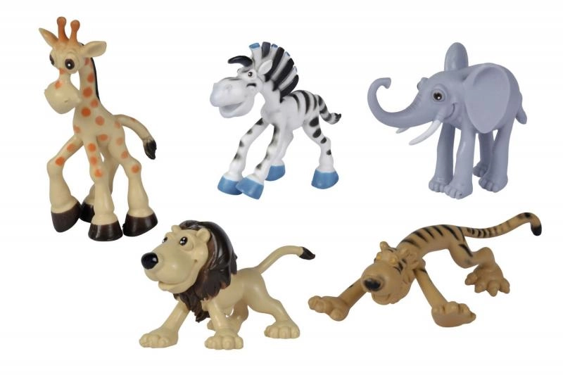 Set od 5 safari životinja: tigar, zebra, lav, slon i žirafa. Veličina životinja 9 – 12 cm.