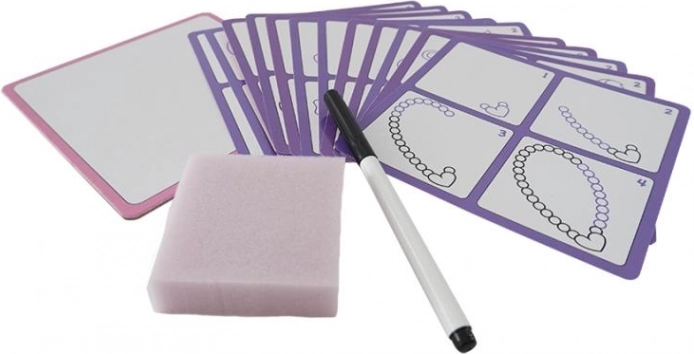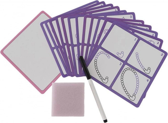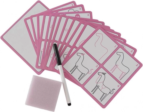 Zabavan i praktičan set za male umjetnike potiče spretnost, koncentraciju i strpljenje. Sadrži 12 višekratnih kartica, posebni brisivi flomaster i spužvicu za lako brisanje, tako da dijete može vježbati crtanje iznova i iznova.