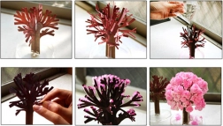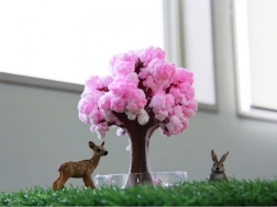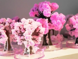 Nakon zalijevanja tijekom nekoliko sati stvaraju se nježni ružičasti kristali koji oponašaju raskošno procvalu sakuru i pretvaraju jednostavno drvce u efektan ukras.