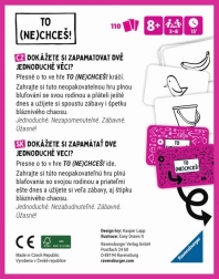 To (ne)želiš! je jednostavna i genijalno osmišljena party igra koja će vam pokazati koliko je lako zbuniti mozak, a istovremeno vas nasmijati. Njezina pravila omogućuju odabir različitih razina težine, čime je igra dostupna i početnicima i iskusnim igračima. Ako želite igrati samo u dvoje, igra ima prilagođena pravila i za tu varijantu.