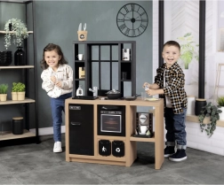 Kuhinijica SMOBY Loft u industrijskom stilu savršeno se uklapa u moderan interijer i djeci nudi siguran prostor za oponašanje pravog kuhanja. Okretni gumbići, otvarajuća vratašca i praktične pregrade potiču igru uloga, samostalnost i socijalnu interakciju.
