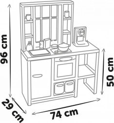 Ploča za kuhanje, pećnica s prozorčićem, sudoper i hladnjak omogućuju djeci oponašati stvarne aktivnosti, okretati gumbiće i otkrivati radost kuhanja.